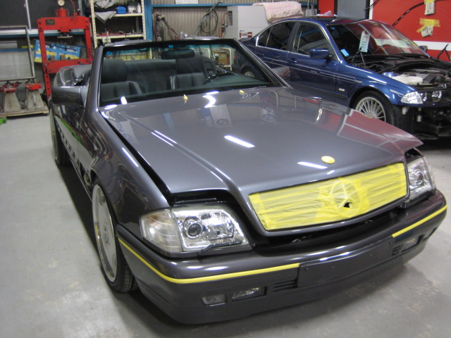 ベンツ SL500 磨き&コーティング コーティング施工中